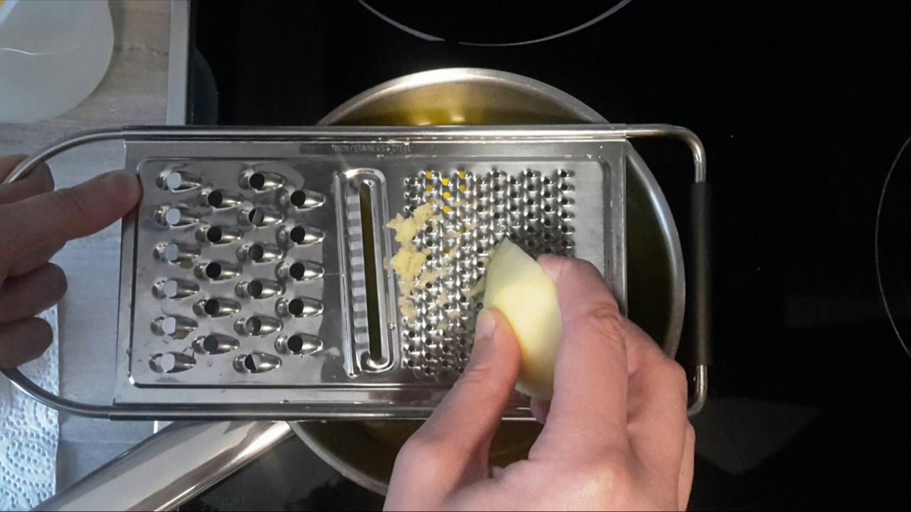 - Schritt 1: Das Öl leicht in einem Topf erhitzen und den halben Apfel dazu raspeln.