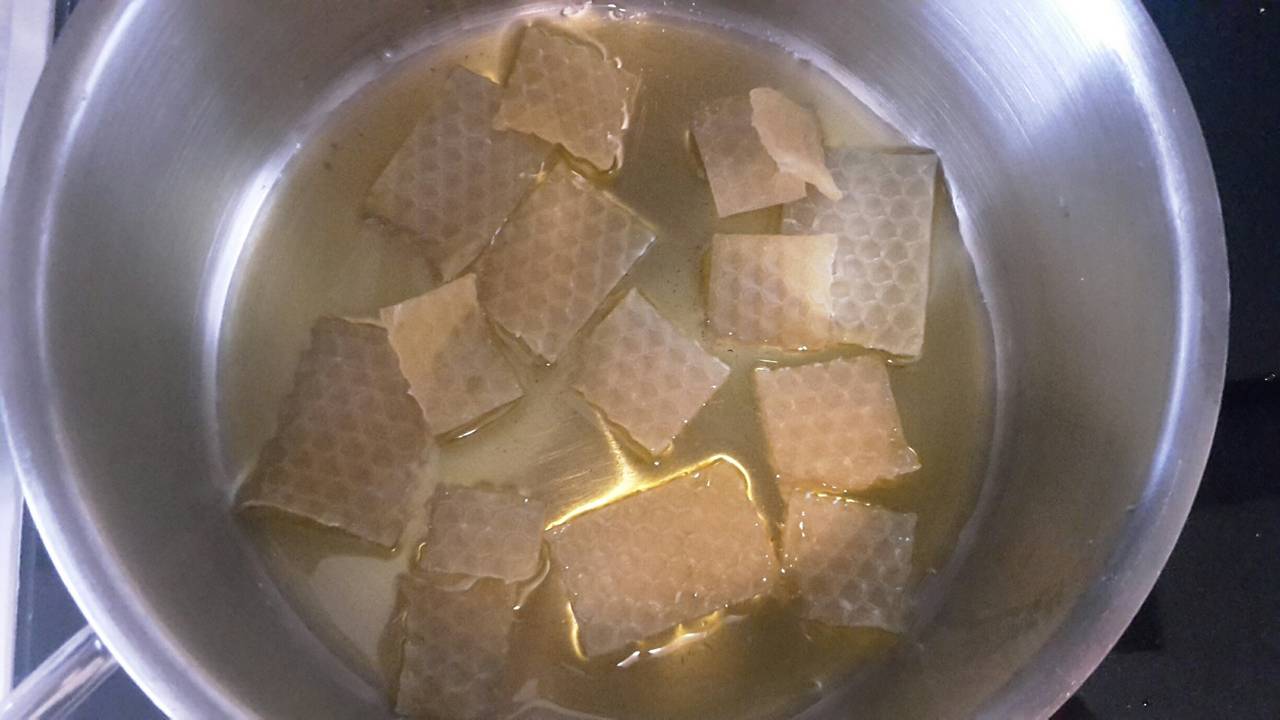- Schritt 4: Zu dem gefilterten Öl den Bienenwachs hinzugeben und leicht erwärmen, bis der Wachs geschmolzen ist.