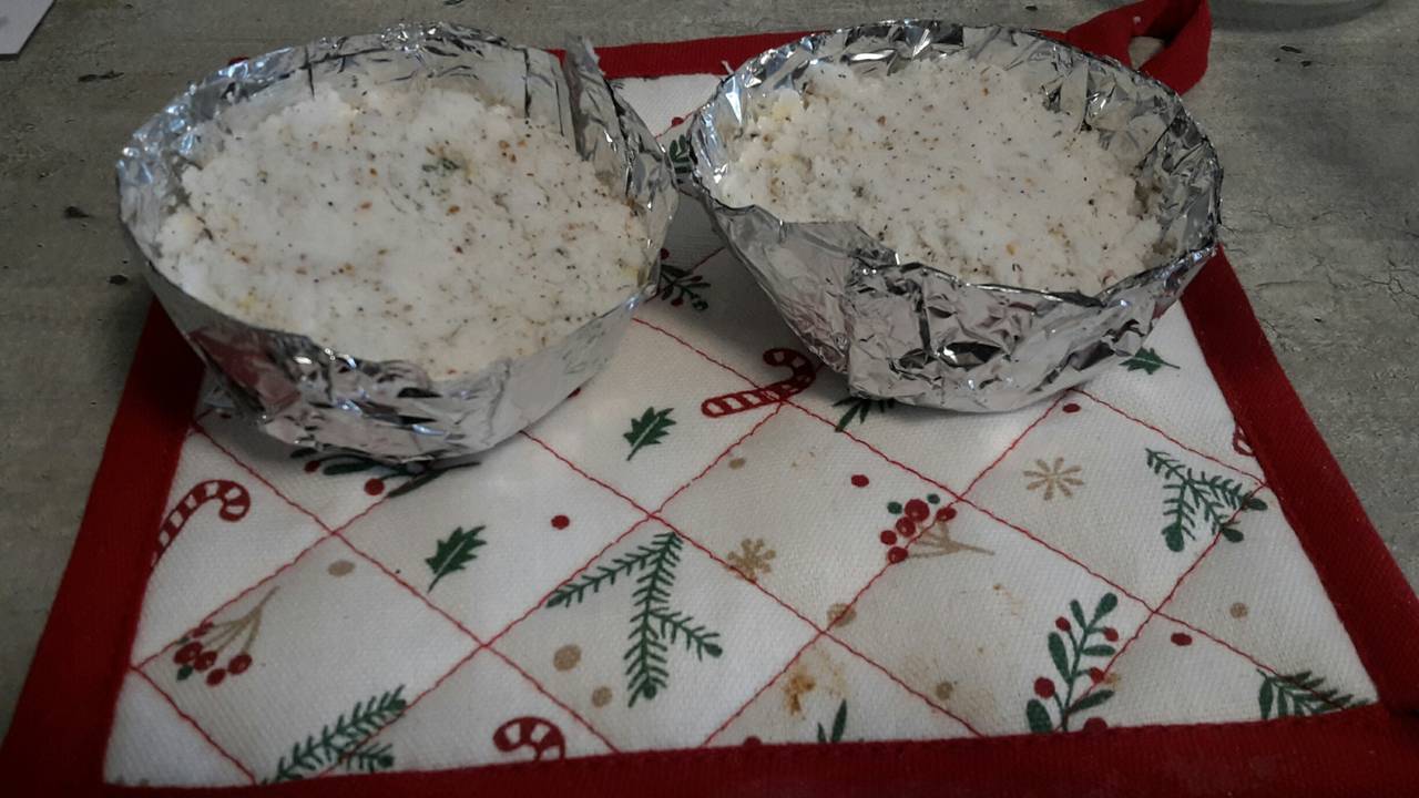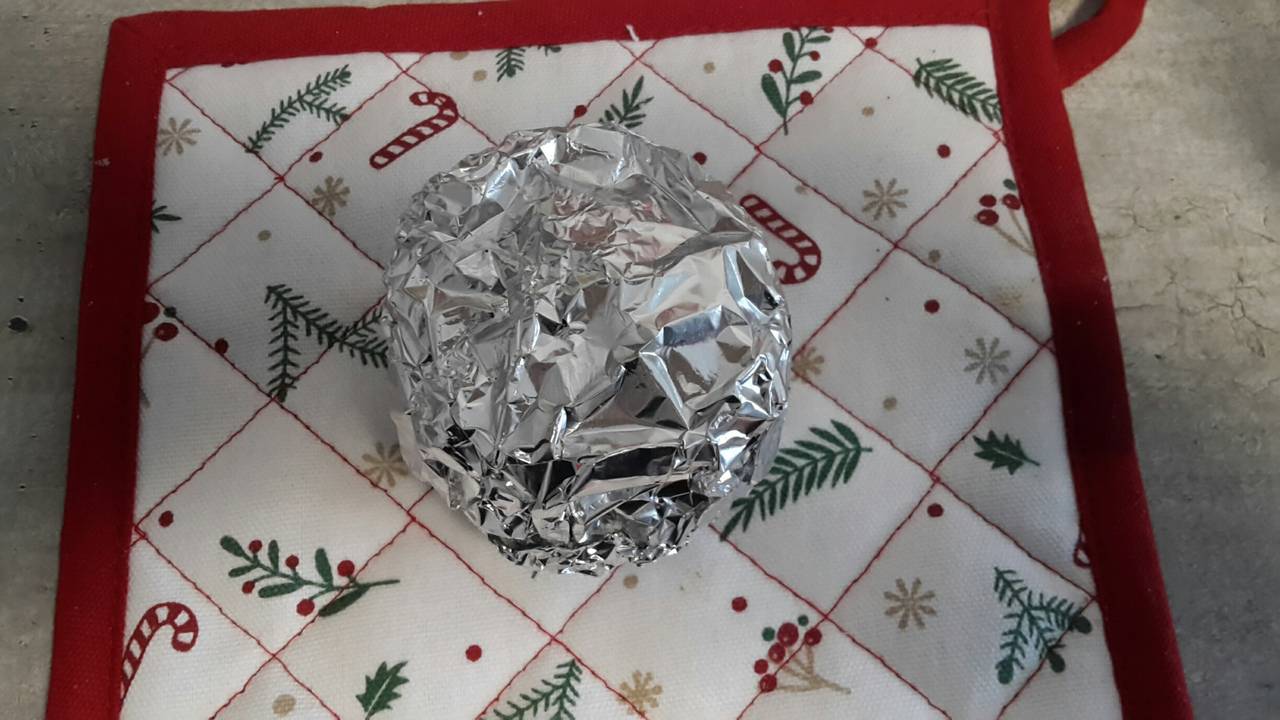 - Schritt 5: Wenn die Masse leicht feucht und körnig ist, dann könnt Ihr mit dem Formen der Badekugeln beginnen. Aus der Masse bekommt Ihr viele Kugeln. Wenn Ihr ganz kleine formt, dann können das 7-9 Stück werden, es gehen aber auch 5 mittlere Kugeln oder 3 große. Dazu nehmt Ihr die Kugelformen oder die Alufolie. Aus der Alufolie müsst Ihr dann jeweils zwei Halbkugeln formen in der entsprechenden Größe. Die befüllt Ihr jeweils mit etwas Badekugel-Teig. Schön festklopfen und dann die beiden Hälften gut zusammendrücken. Die Kugel muss halten.