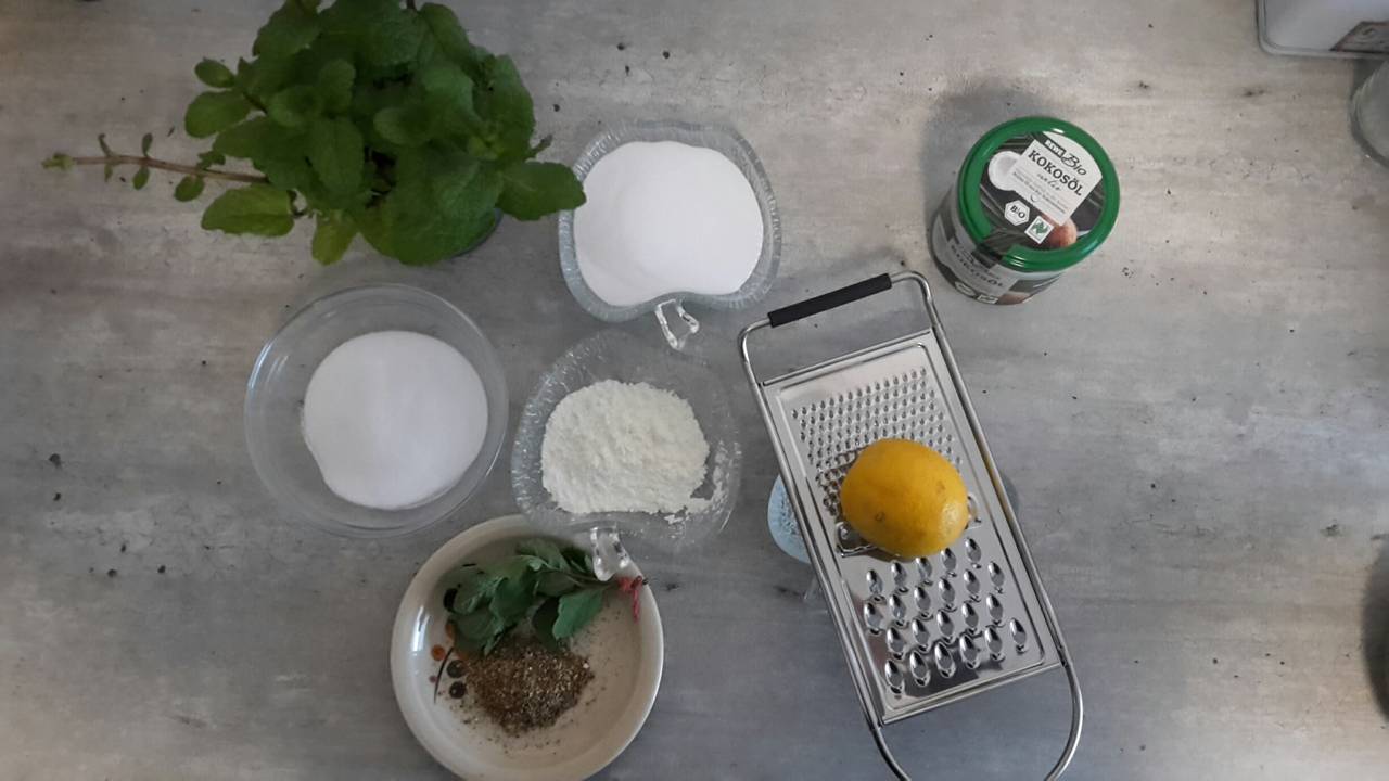 - Schritt 1: Alle Pulver, Natron, Zitronensäure, Stärke, miteinander vermischen.