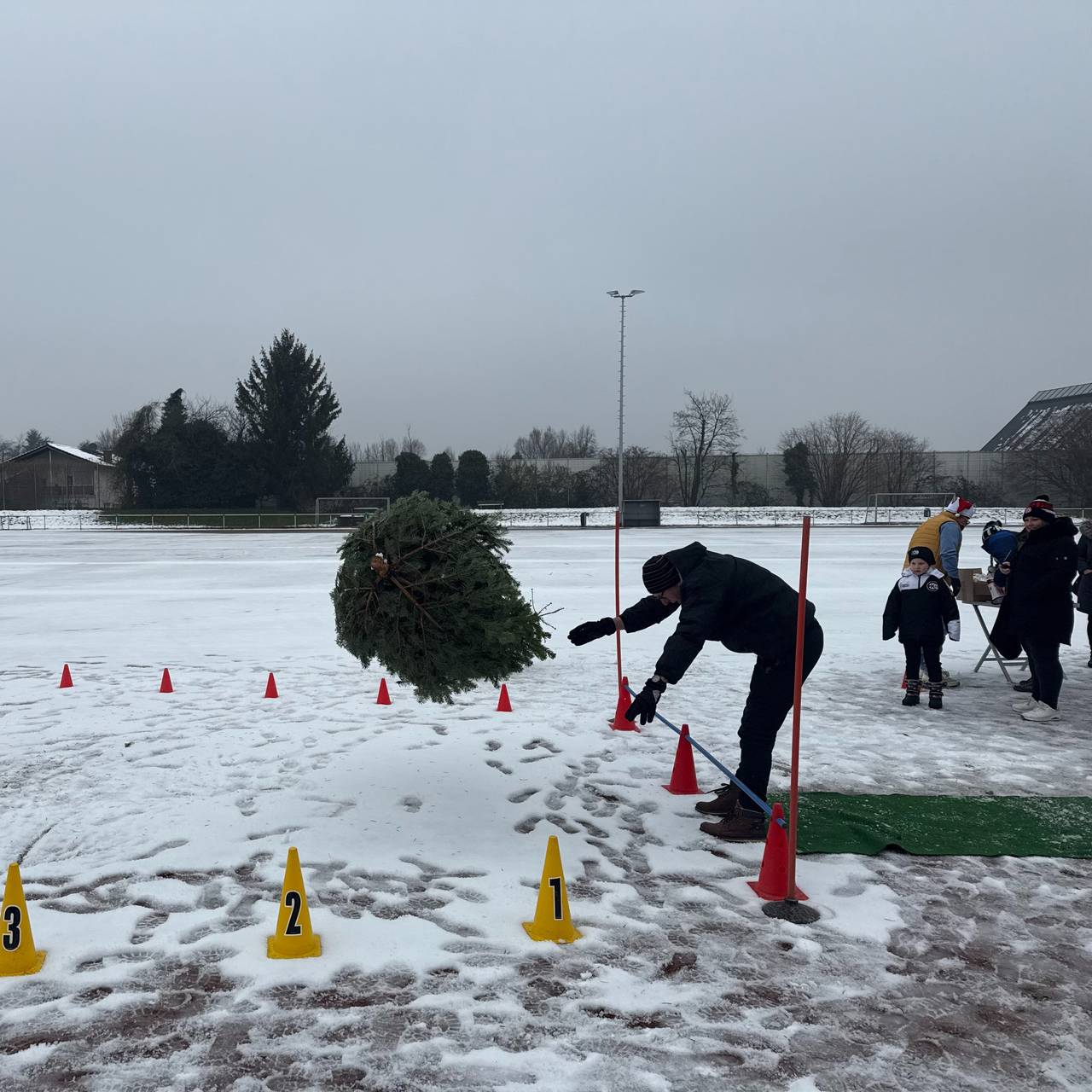 Durch den Schnee der letzten Tage war auch der Platz in Kray noch sehr weiß. Das wurde zu einer schönen Kulisse für das Weihnachtsbaum-Weitwerfen.
