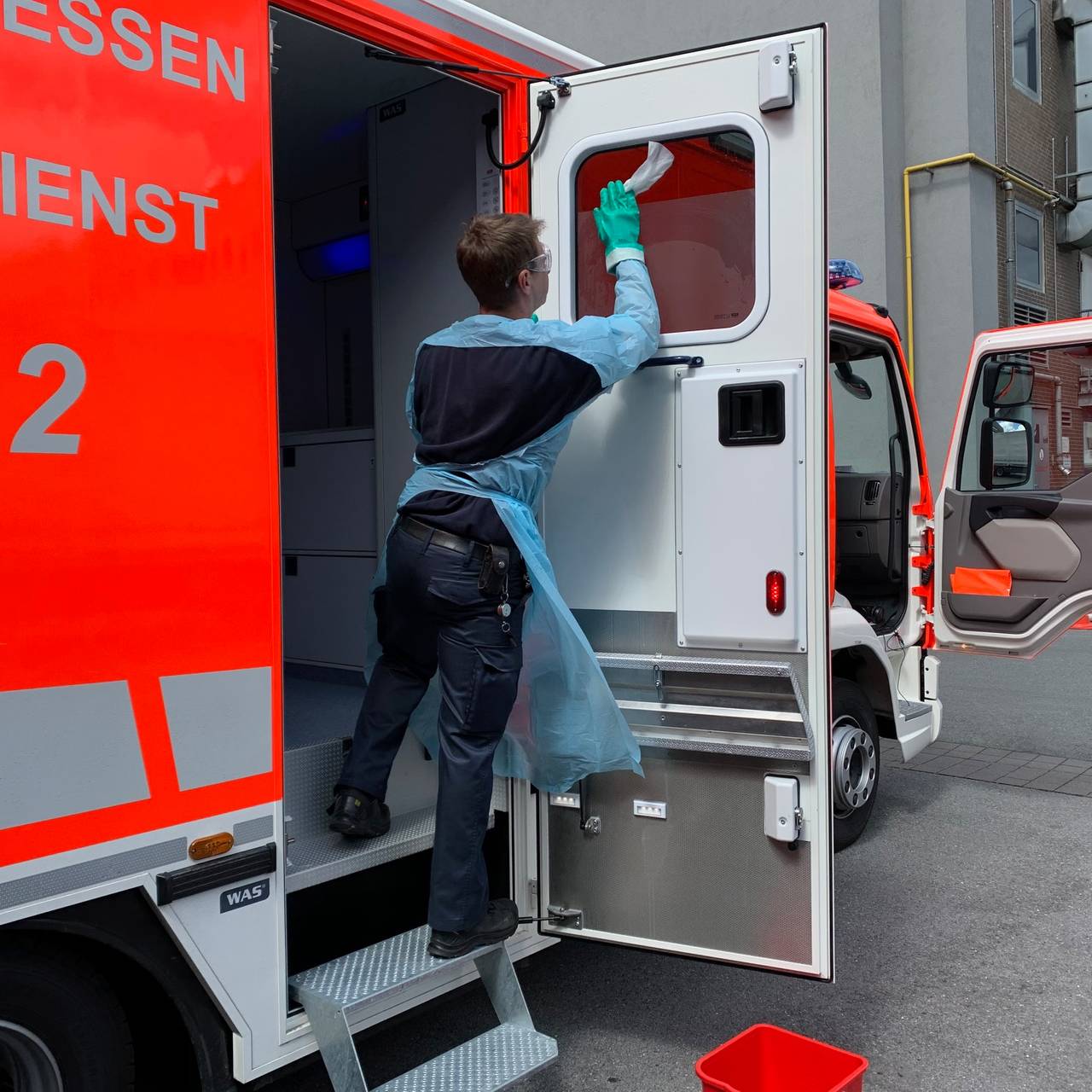 Wie die Rettungswagen der Feuerwehr Essen desinfiziert werden