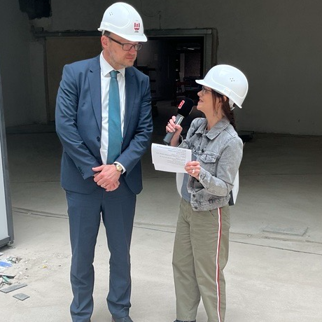 Der Umbau des Königshofs in Essen läuft aber weiter nach Plan, sagt Michael Gluth von der Koerfer-Gruppe bei einem Rundgang über die Baustelle. Das Problem mit der Decke sei zwar dazu gekommen, trotzdem wird innen weiter wie geplant ausgebaut. Im Erdgeschoss beispielweise lässt sich langsam erahnen, wie die Markthalle später aussehen wird. Der Betreiber hat da ein klares Konzept und die Stände werden ähnlich aussehen. Am Ende steht schon die große Freitreppe zum ersten Obergeschoss. Ein Blick nach oben zeigt: Im alten Kaufhof ist plötzlich wieder ganz viel Licht. Die Koerfer-Gruppe hat die Decke komplett geöffnet. Ein neues Atrium sorgt für ein offenes Raumgefühl. Auch der Weg ins Untergeschoss ist schon möglich. Ein Roll-Band verbindet die beiden Supermärkte unten mit der Markthalle. Kundinnen und Kunden können sich so ganz bequem mit dem Kinderwagen oder dem Rollator hin und her bewegen. Im Untergeschoss soll auch noch ein Sportkonzept umgesetzt werden, Einzelheiten will die Koerfer-Gruppe noch nicht verraten. Klar ist aber, dass im Obergeschoss eine große Zahnklinik einziehen wird. Die Klinik plant einen 24/7-Betrieb. Auch die Öffnungszeiten für den türkischen Supermarkt Erdemli und die Aldi-Filiale werden länger sein, als an anderen Standorten. Michael Gluth aus der Geschäftsführung der Koerfer-Gruppe hat Radio Essen-Moderatorin Anna Bartl zu einer Führung eingeladen.