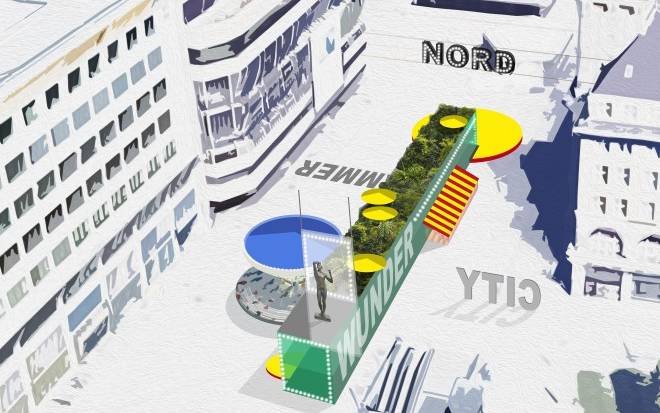 Die Entscheidung in Essen über die Neugestaltung des Willy-Brandt Platzes ist gefallen. Wir in Essen konnten online zwischen drei Projektideen abstimmen. Die meisten Stimmen gab es für die "Wunderkammer City-Nord". Das ist ein 20 Meter langes Gerüst, was mit Stoffbahnen behängt wird. Das Dach der Wunderkammer soll begrünt und mit einer Dachterrasse versehen werden, drinnen soll es Wochenmärkte oder Kreativwerkstätte geben. Am Ende der Wunderkammer soll eine Bühne stehen, auf der Freilichtaufführungen vom Grillo-Theater oder Open Air-Kino stattfinden können.