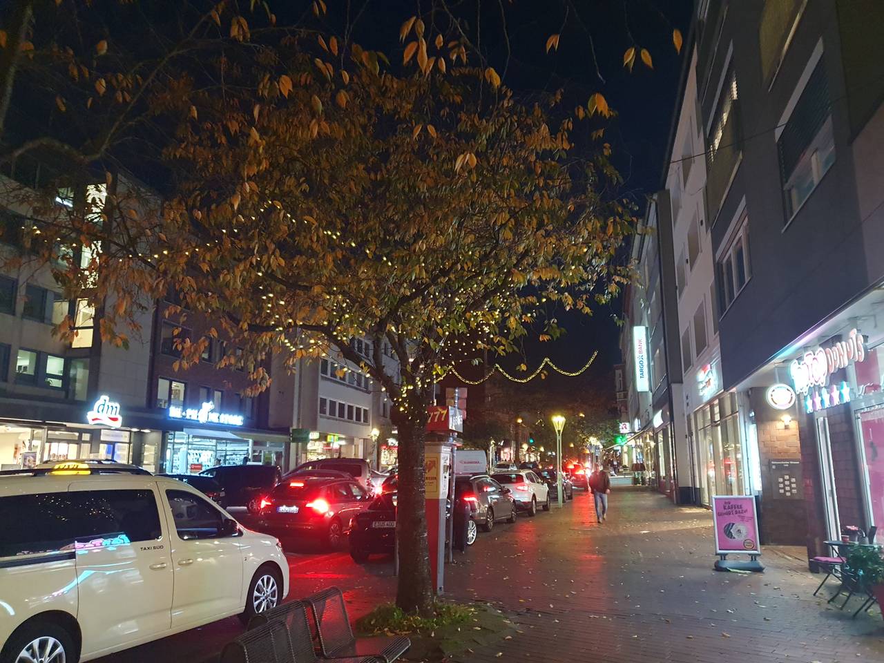 Auch bei der Winterbeleuchtung wurde versucht, Energie zu sparen. Seit mehreren Jahren schon kommt das Licht nur noch aus LEDs, doch auch die Leuchtzeit und die Menge an Lichtern wurden angepasst. Die Winterbeleuchtung geht später an und wird früher wieder ausgeschaltet. Um 22.00 Uhr ist immer Schluss, die Anfangszeit variiert jedoch. Angepeilt ist durchschnittlich 17.00 Uhr, aber um mit dem Sonnenuntergang zu gehen und nicht zu früh oder zu spät die Lampen anzuschalten, wird die Zeitschaltuhr regelmäßig angepasst. Auch auf die Lichterketten in vielen Bäumen wird verzichtet, aber nicht nur um Energie zu sparen. Es fehlt auch das Geld, um die von dem Baumschnitt zerstörten Ketten zu erneuern. Die wenigen Bäume, bei denen es möglich ist, werden trotzdem beleuchtet. Die Winterbeleuchtung in Rüttenscheid soll bis Anfang Februar leuchten.