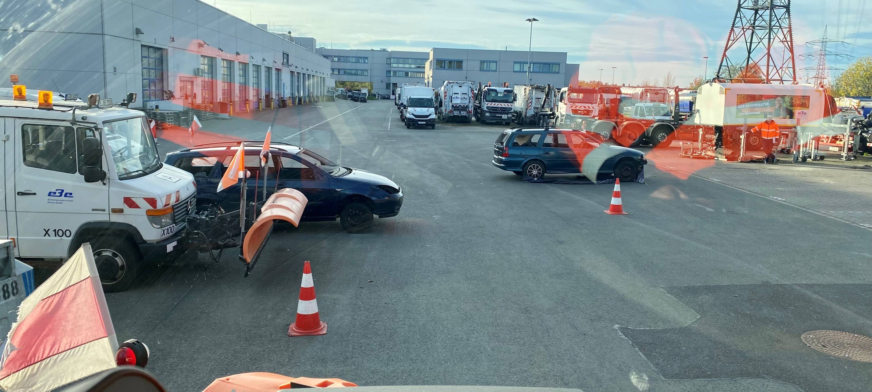 Auf dem Betriebshof der Entsorgungsbetriebe ist ein Trainings-Parcours aufgebaut, auf dem die Mitarbeiter üben, wie sie die Räumfahrzeuge mit dem überbreiten Schneepflug sicher durch die Kurven lenken können. Unser Radio Essen-Stadtreporter war dort mit einem EBE-Mitarbeiter unterwegs: