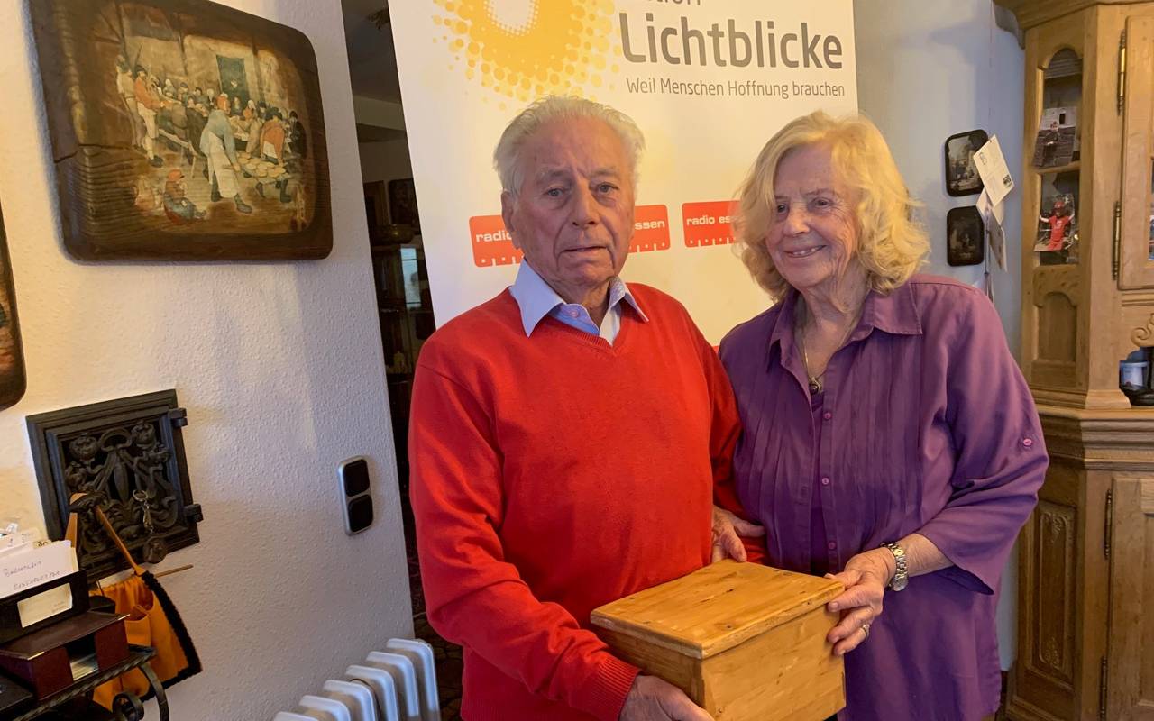 Hilde und Horst feiern im April zusammen ihren 175. Geburtstag. Die Beiden wollen keine Geschenke, sondern lieber Geld, dass sie der Aktion Lichtblicke spenden wollen. Radio Essen-Stadtreporter Timm Schröder hat die Friedrichs in ihrem Haus in Überruhr besucht und schon mal bei Kaffee und Erdbeerkuchen ein wenig vor gefeiert. Hilde und Horst haben mit ihren 85 Jahren bzw. bald 90 Jahren schon eine Menge erlebt. In unserem Interview erinnern sie sich zum Beispiel gerne an den Tag zurück, an dem sie sich vor über 60 Jahren kennengelernt haben. Das war am Arbeitsplatz von Horst. 45 Jahre hat er bei den Sport und Bäderbetrieben gearbeitet. Bei der Party kamen 500 Euro für Lichtblicke zusammen.