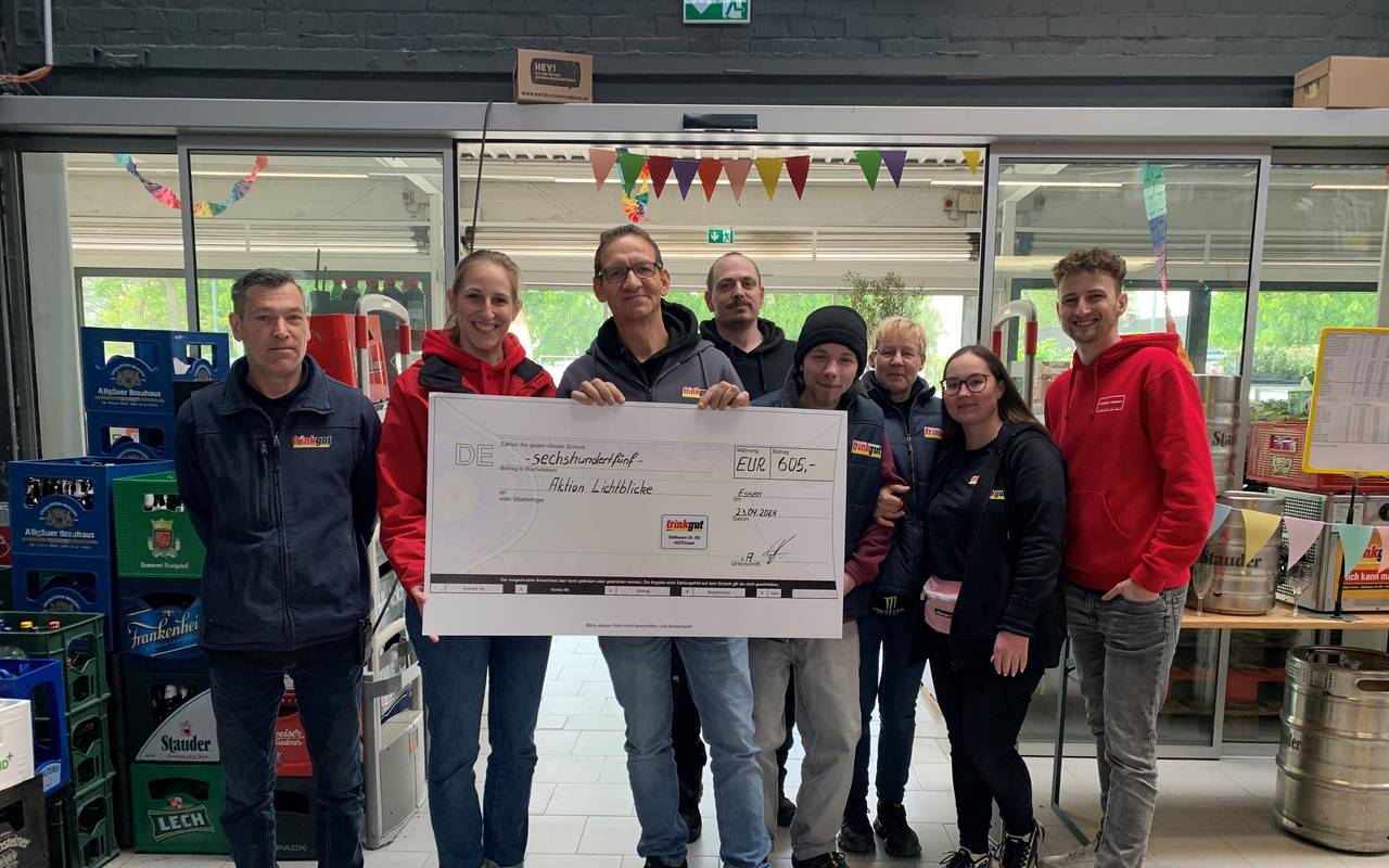 Immer gut für einen Kasten Wasser oder was anderes, ist die Trinkgut Filiale Kronen in Steele. Die Filiale an der Dahlhauser Straße wurde umgebaut. Das Team hat den Umbau mit einem großen Sommerfest gefeiert. Es gab natürlich Getränke und Grillwürstchen und eine große Spendendose für unsere Aktion Lichtblicke. 650 Euro sind so zusammengekommen und wir freuen uns über den Einsatz und können weiter Kindern und Familien in NRW in Not helfen.