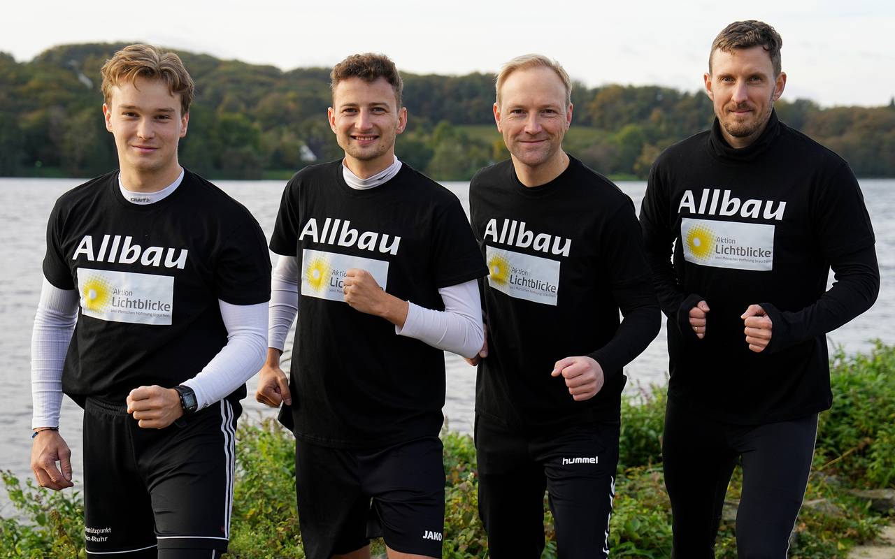In Essen hat der TuSEM-Marathon am Baldeneysee eine lange Tradition. Jedes Jahr gehen die Läuferinnen und Läufer an den Start und einige teilen sich die Strecke untereinander als Staffel auf. Unter anderem mit dabei die AllbauLichtblicke-Staffel. In diesem Jahr liefen Jan Peter Grad, Studenten-Weltmeister im Kajak 2-er, Armin Rosmus und Tobias Fabian von der Allbau GmbH und Radio Essen-Moderator Joshua Windelschmidt. Für jede Staffel, die im Wettbewerb schneller war als die AllbauLichtblicke-Staffel spendet die Allbau GmbH 150 Euro. Das Team hat die Strecke in 3:16 Stunden geschafft und landet auf Platz 10. Es gehen 1350 Euro an die Aktion Lichtblicke. Insgesamt hat die Allbau GmbH seit 2009 25.000 Euro an Lichtblicke gespendet.