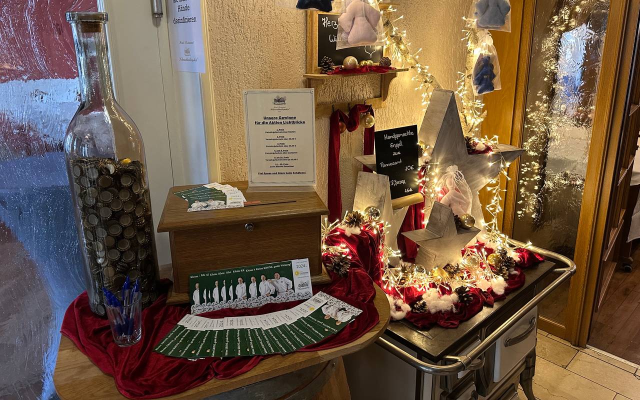 Im Hotel und Restaurant Schmachtenbergshof in Kettwig haben die Gäste wieder zum Jahresende hin viel Spaß gehabt. Sie haben beim großen Tipp-Spiel der Brüder Kaiser mitgemacht. Dieses Jahr stand eine große Flasche mit Kronkorken am Eingang des Restaurants. Die Gäste konnten schätzen wie viele Kronkorken in der Flaschen waren. Das Ergebnis: 1859 Kronkorken der Brauerei Stauder. Der Gewinner hat sich gerade einmal um einen Kronkorken verschätzt und die beiden folgenden Gewinner um 2 und 4 Kronkorken. Die Gewinner bekommen jetzt Gutscheine vom Schmachtenbergshof und Stauderpräsente. Die Aktion Lichtblicke bekommt die Spenden und das sind mehr als Kronkorken: 2600 Euro. Die Inhaber des Hotels und Restaurants Schmachtenbergshof haben wieder aufgerundet nachdem sie alle Spenden zusammengezählt haben. Die Gäste zahlen pro Tipp mindestens einen Euro, viele aber auch viel mehr, freuen sich die Brüder Kaiser über die bisher größte Spende seit Beginn der Aktion im Restaurant und bedanken sich herzlich bei ihren Gästen.