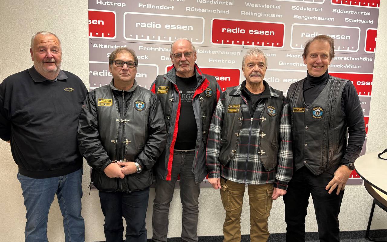 Die Flying Angels aus Altendorf sind eine christliche Biker-Gruppe und treffen sich regelmäßig zum Stammtisch, machen Clubabende, fahren zusammen Motorrad und verbreiten vor allem den christlichen Glauben mit der Biker-Bibel. Die meisten der Flying Angels sind auf Umwegen in ihrem Leben zum Glauben und zu den Flying Angels gekommen. Die Gruppe ist angeschlossen an die evangelische freikirchliche Gemeinde in Altendorf. Zusammen haben sie in diesem Jahr entschieden, alle Spenden aus der Stammtischrunde jeden zweiten Montag im Monat gehen an die Aktion Lichtblicke, das sind 550 Euro. Die kamen in einer kleinen Kiste bei uns an, übergeben von einigen Clubmitgliedern Jürgen, Wolfgang, Werner, Manni und Lothar. Zusammen haben sie Radio Essen-Moderator Joshua Windelschmidt erzählt, was die Biker alles zusammen unternehmen.