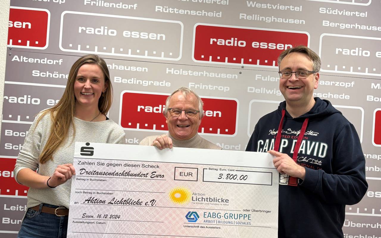 "Wir hatten ein gutes Jahr" zieht die Essener Arbeit und Beschäftigungsgesellschaft Bilanz. Das Unternehmen kümmert sich um Langzeitarbeitslose und bringt sie wieder zurück in den Job. Außerdem sanieren die Mitarbeiterinnen und Mitarbeiter zusammen mit den Arbeitslosen gerade einige Schultoiletten in der Stadt. Solche Aufträge helfen die Arbeitslosen weiter zu vermitteln. Auf den Baustellen lernen sie Handwerker kennen und die wiederum lernen die Menschen kennen und so wird am Ende daraus eine richtiger fester Job. Zusammen haben alle eine große Weihnachtsfeier gemacht und Lose für eine Tombola mit vielen tollen Preisen verkauft. Alles Lose gingen weg und dabei wurden 3800 Euro eingenommen. Das Geld geht komplett an die Aktion Lichtblicke und damit ist vor allem Hartmut Küttemann-Busch, Geschäftsführer der EABG sehr zufrieden erzählt er im Interview mit Radio Essen-Moderatorin Anna Bartl.
