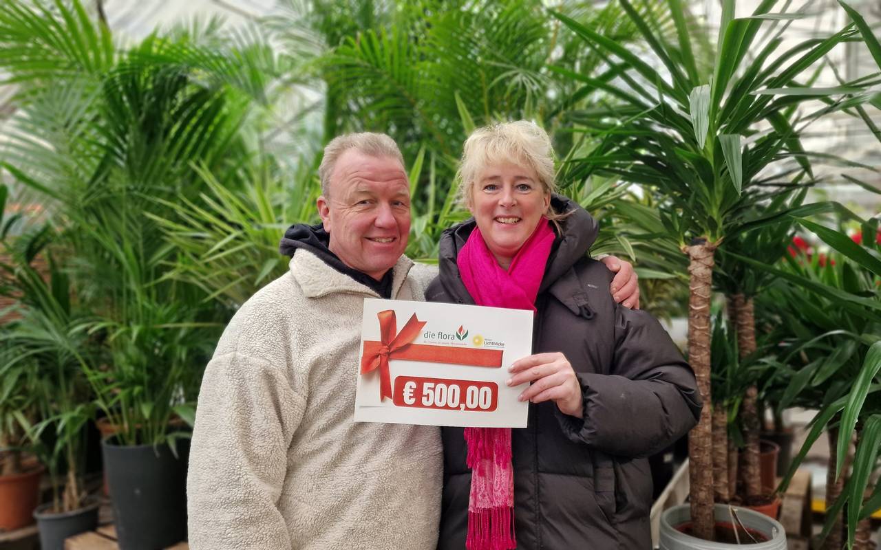 Die Nachfrage nach den Weihnachtsbäumen im Gartencenter "die flora" in Heidhausen war auch in dieser Saison wieder groß. Jede Kundin und jeder Kunde konnte unter den vielen Bäumen genau den finden, der passt. Ob groß, breit, klein oder schmal, alles war im Angebot. Das Ehepaar Schuster freut sich jedes Jahr, wenn alle den richtigen Baum finden und mitnehmen können. Jetzt haben sie Bilanz gezogen und spenden 500 Euro. Pro Baum wird jedes Mal ein Euro zurückgelegt und am Ende stockt das Ehepaar aus dem Gartencenter die Summer immer großzügig auf.