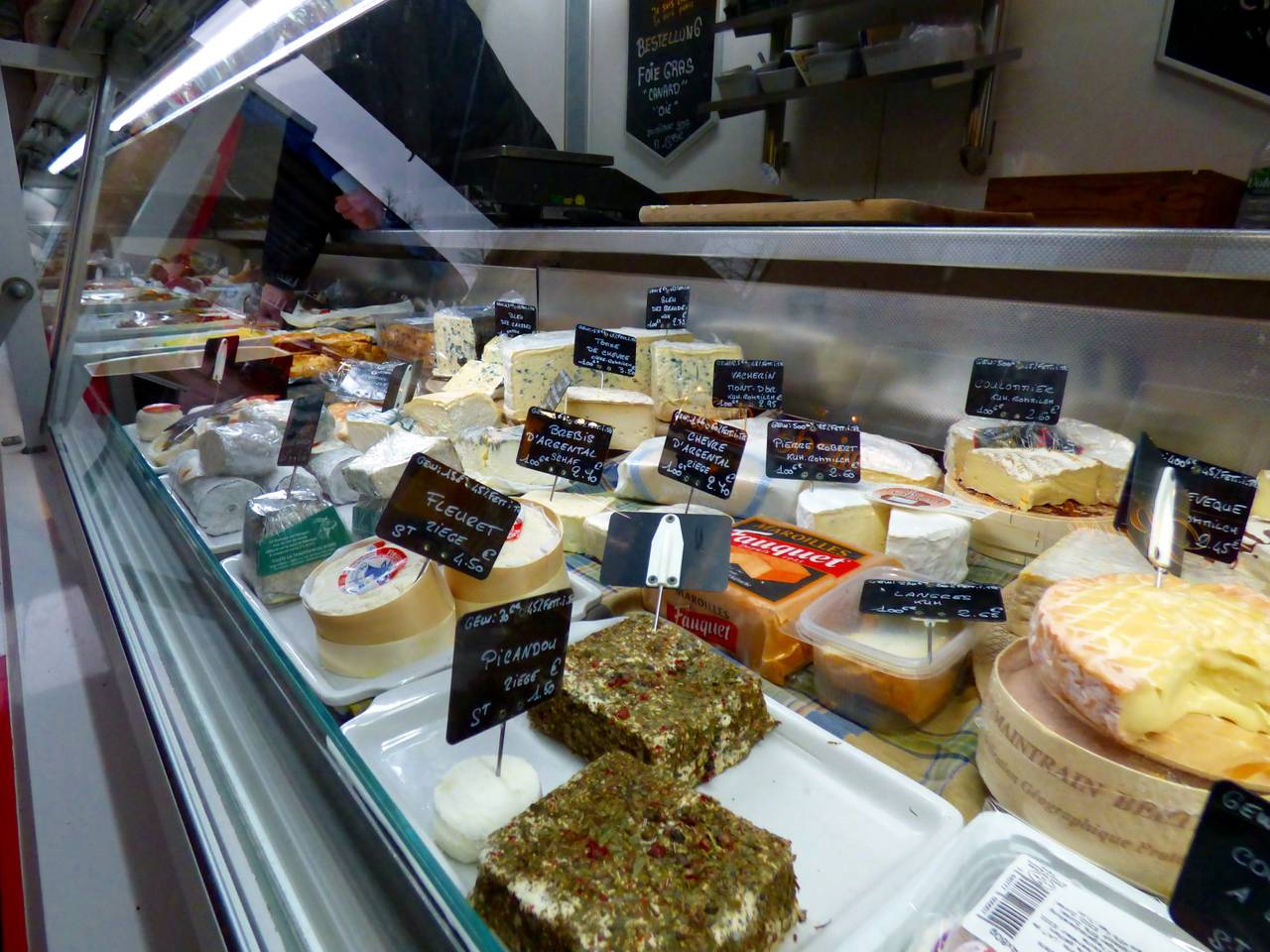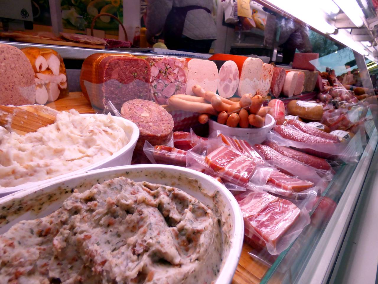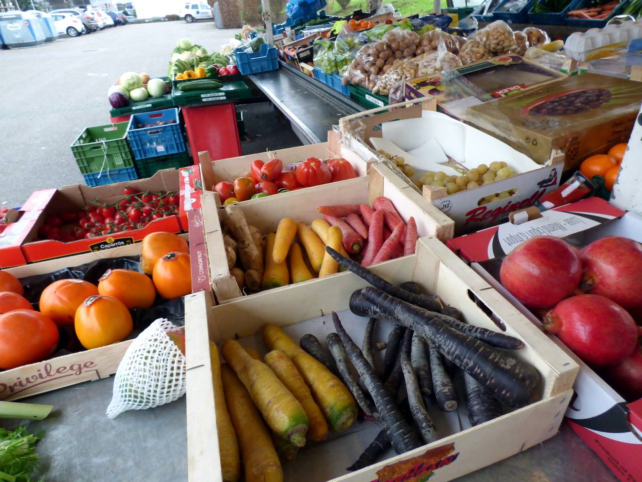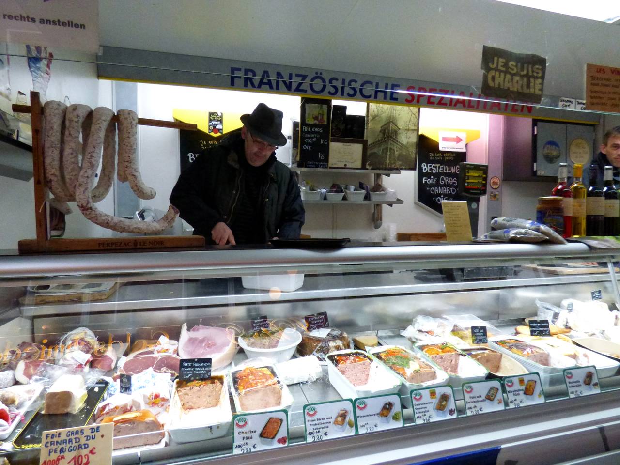 Hier gibt es Obst und Gemüse, einen Flammkuchenstand, einen Bäcker und einen holländischen Fischstand mit Backfisch.