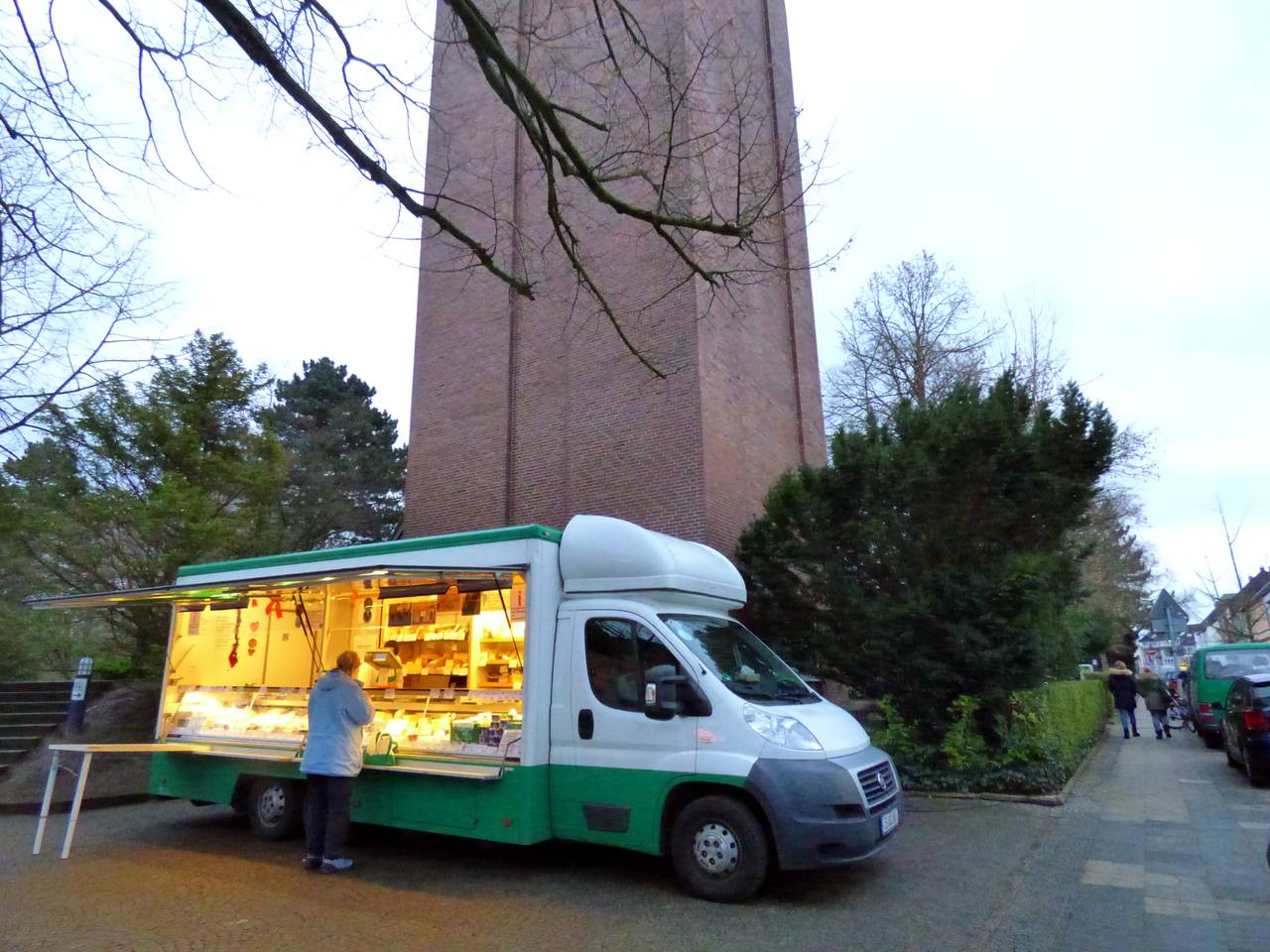 Der Wochenmarkt in Bergerhausen ist in der Elbestraße vor der Johanneskirche.