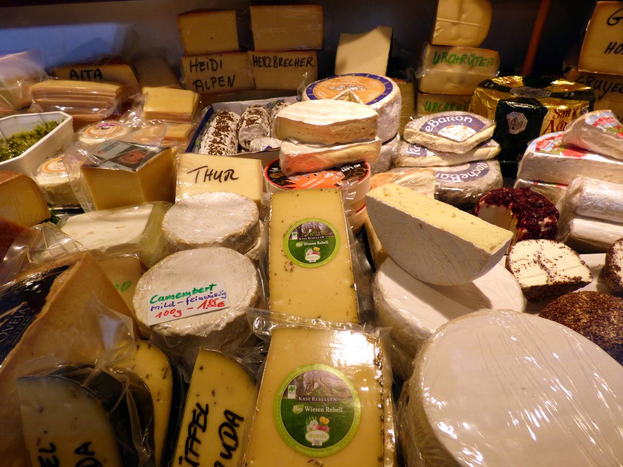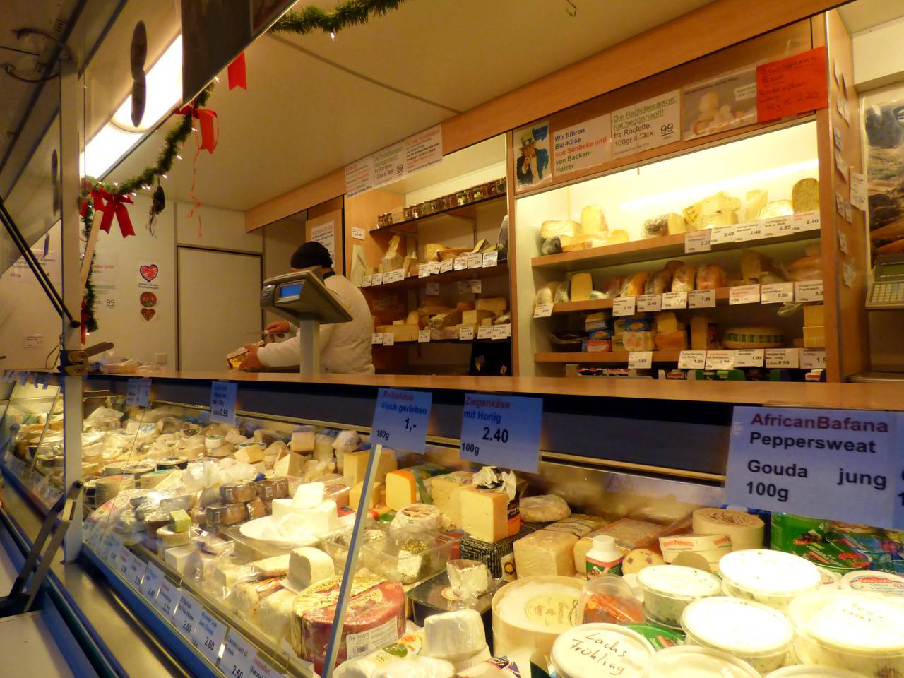Hier gab es mal über 20 Stände. Heute steht nur noch Jochen aus Kettwig dort. Bei ihm ist alles Käse! Dank seiner Stammkunden läuft das Geschäft da auch noch gut. Jochen steht auch noch auf dem Markt in Kettwig, Holsterhausen, Rüttenscheid und auf der Margaretenhöhe. Er hat Stammkunden, die kommen seit Jahren immer zu Jochen, um Käse zu holen.