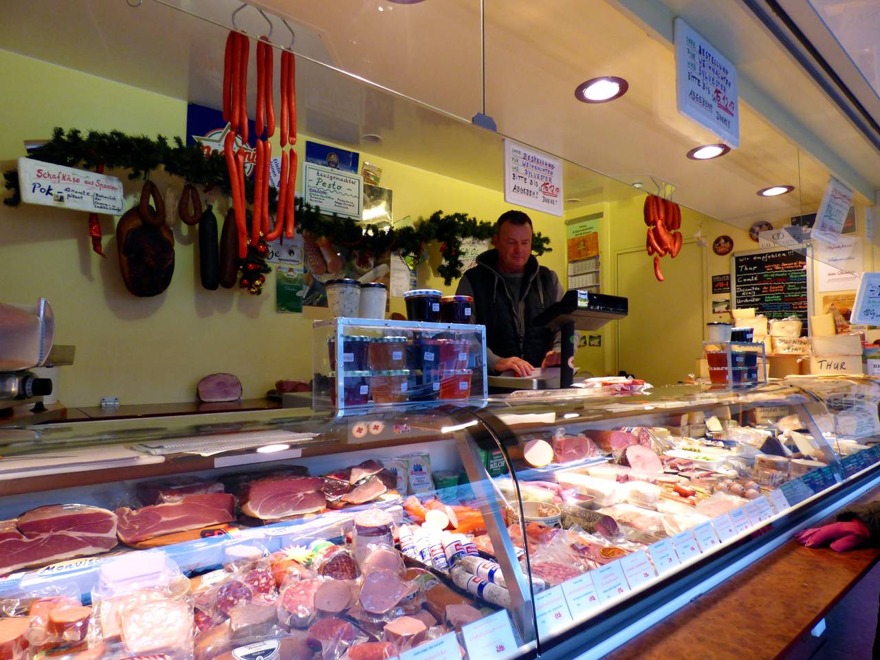 Hier gibt es Obst, Gemüse, Frischfleisch, Textilien. Andreas ist der Obmann des hiesigen Marktes und Frischfleischhändler. Er ist für die Organisation der Marktstände zuständig und auch Ansprechpartner, wenn es Fragen oder Probleme gibt.