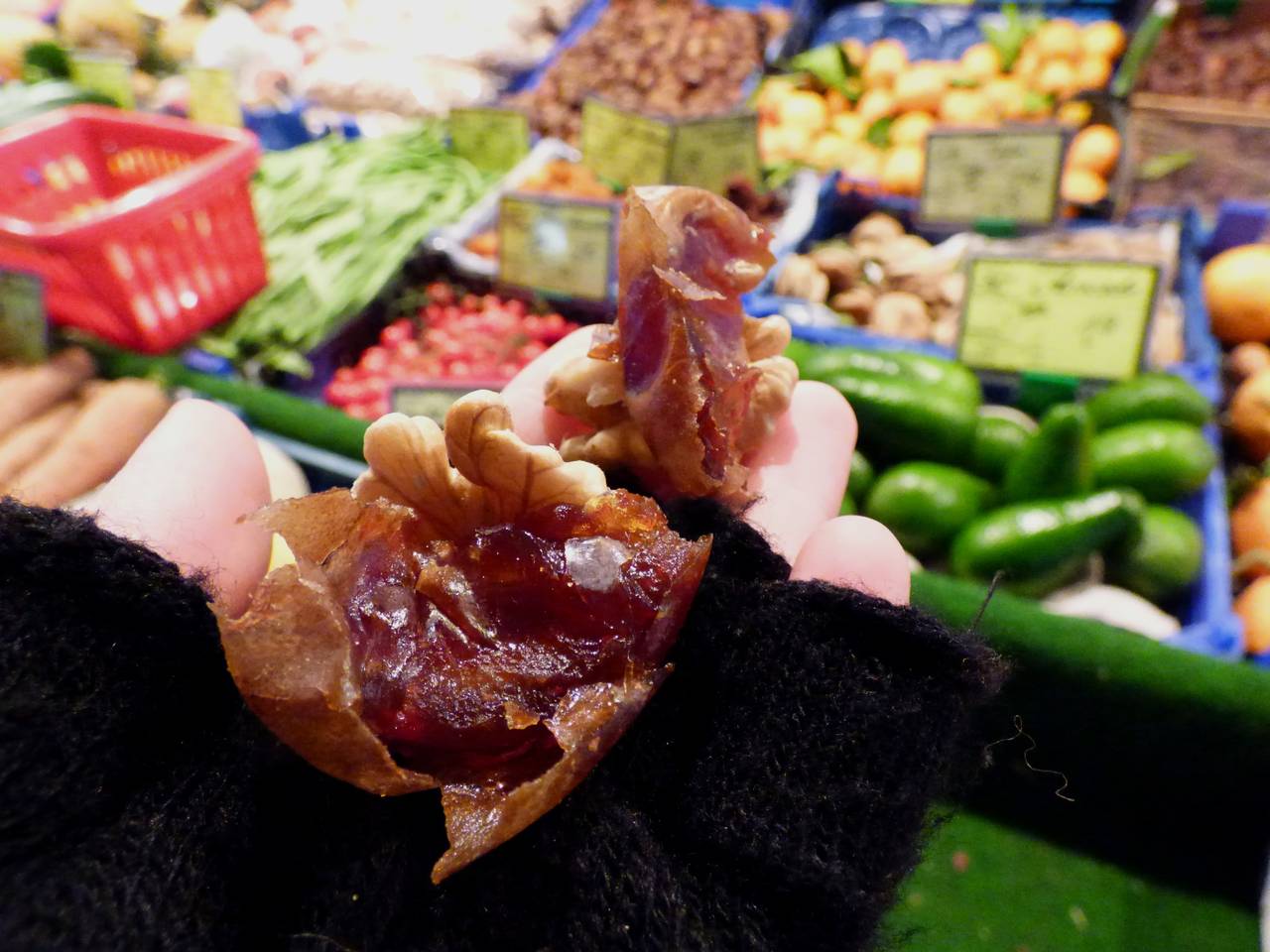 Direkt an der Neuen Mitte Haarzopf ist ein kleiner, aber feiner Markt. Hier gibt es Blumen und Obst und Gemüse. Robert Mauermann ist Obst- und Gemüsestand und kommt aus einer Markthändlerfamilie. Der Alltag am Wochenmarkt steckt ihm also quasi im Blut. Bei ihm durften wir Pralinen mit Wallnüssen probieren, super lecker!