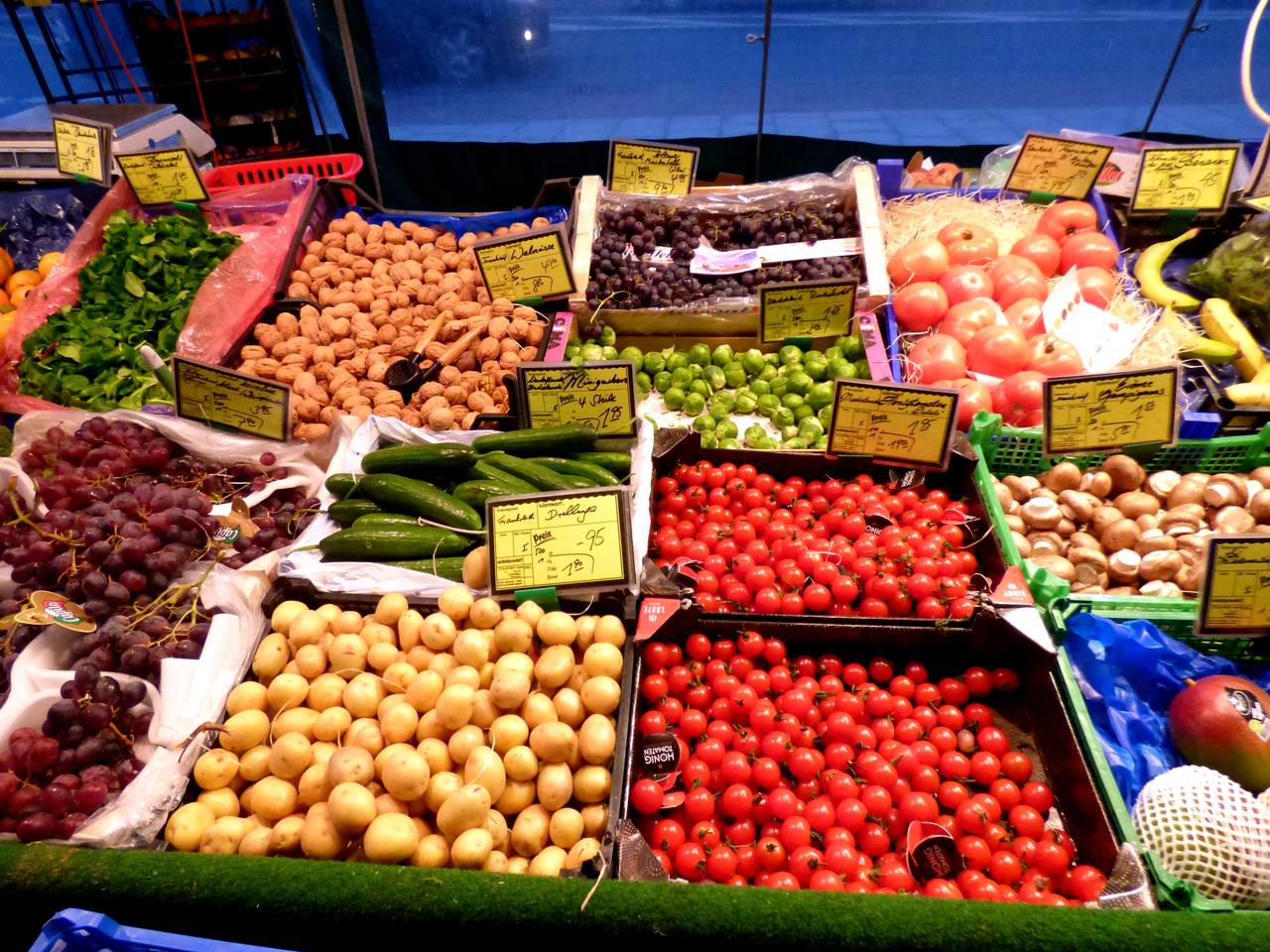 Hier gibt es Obst und Gemüse, Frischfleisch, Frischfisch, Käse und Blumen. Gonca Demirci verkauft hier Obst und Gemüse. Er ist z.B. auch noch in Frintrop zu finden.