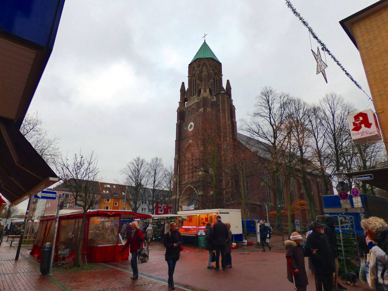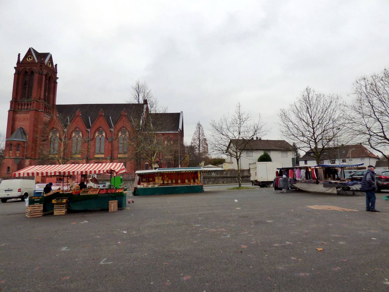 Der Wochenmarkt in Frintrop ist in der Schlenterstraße, an der St. Josef-Kirche.