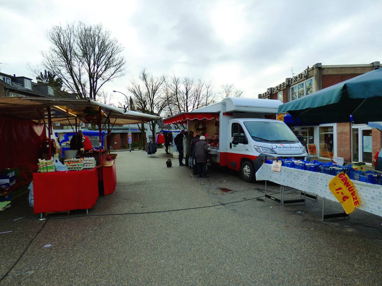 Der Wochenmarkt in Kupferdreh ist auf dem Kupferdreher Markt.