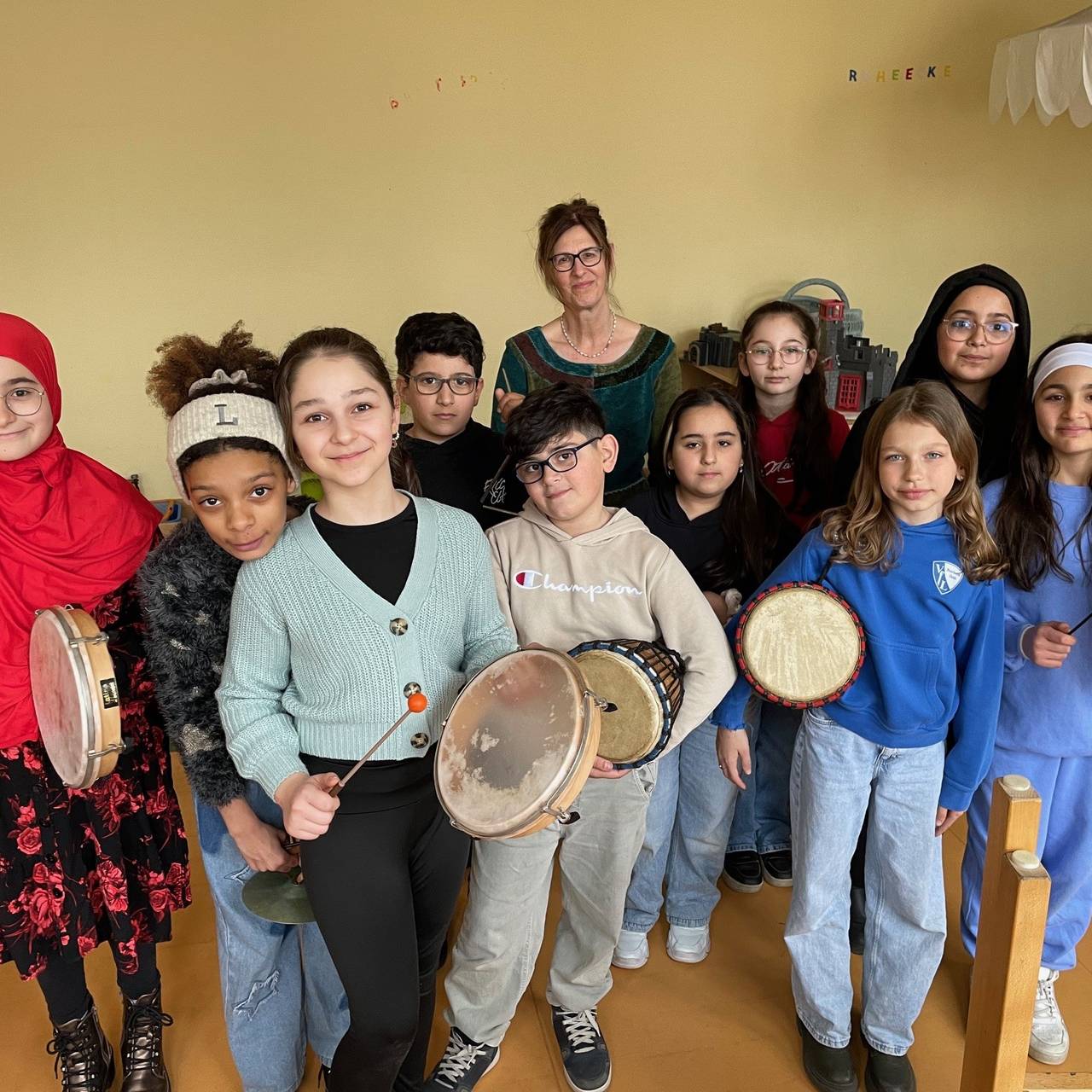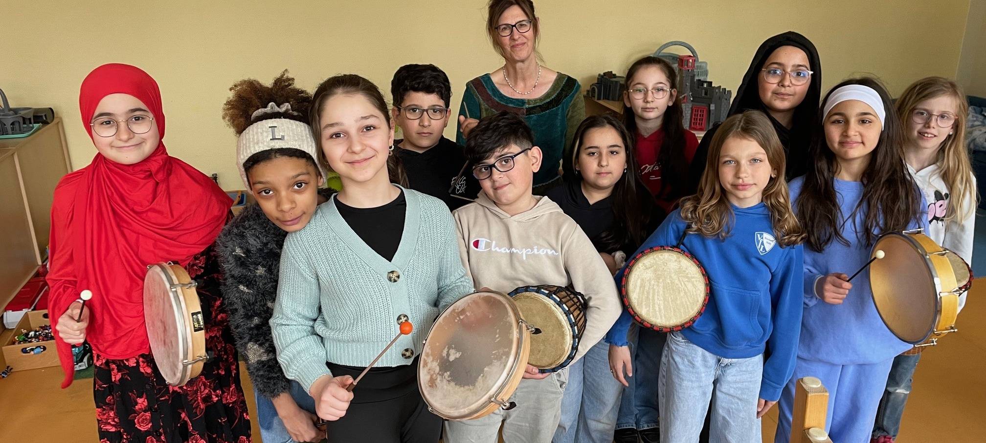 Radio Essen-Stadtreporter Timm Schröder besucht die Kinder der vierten Klassen der Neuessener Schule in Essen-Altenessen. Sie stehen in der Vorstellung am Sonntag ab 14 Uhr für einige Minuten auf der Bühne der Lichtburg. Für die Proben in der Schule haben die Kinder das entsprechende Musikstück aus "Peter und der Wolf" geschickt bekommen. Sie musizieren dazu auf verschiedenen Trommeln, Becken und Triangeln. Mal laut, mal leise, mal zusammen oder sogar einzeln. Musiklehrerin Sabine Schmidtke gibt mit ihren Händen den Takt an. Alle Kinder haben sie dafür im Blick. Bei unserem Besuch haben sich die 9- und 10-jährigen Schülerinnen und Schüler nicht ganz richtig aufgestellt. Trotzdem klappt diese letzte improvisierte Probe in einem Raum des offenen Ganztags richtig gut und alle freuen sich auf ihren großen Auftritt am Sonntag.