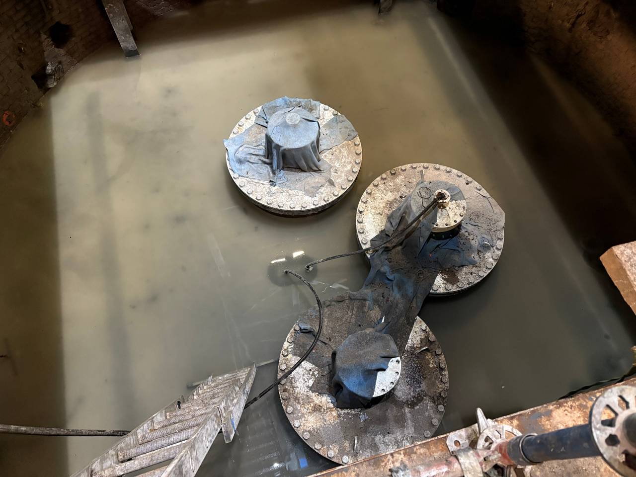 In Essen ist der Doppelbock der Zeche Zollverein das Wahrzeichen für die Stadt. Früher drehten sich immer die Räder am Doppelbock. Die Bergleute fuhren ein und holten die Kohle aus dem Berg. Wenn sich die Räder drehen, dann läuft alles. Schon seit Monaten allerdings dreht sich kein Rad am Doppelbock. Keine Seile liegen auf den Rädern. Es ist still geworden. Seit April sind die beiden Schächte XII und II komplett mit Beton verfüllt. In beiden Schächten wurden aber Brunnenrohre (Hüllrohre) eingebaut. Schacht XII und 2 sind sogenannte Sicherungsstandorte für die RAG AG. Falls das Grubenwasser nicht wie geplant abfließt, können hier Tauchpumpen abgelassen und das Wasser abgepumpt werden. Das ist eine der wichtigsten Aufgaben nach dem Bergbau für die RAG. Eine Aufgabe für die Ewigkeit. Das salzhaltige Grubenwasser soll sich nicht mit dem Grundwasser, das auch als Trinkwasser genutzt wird, vermischen. Erst wenn in einigen Jahren klar ist, ob das Grubenwasser so abfließt in Richtung Rhein wie geplant, kann die RAG überlegen, ob wieder Seile auf die Scheiben am Doppelbock gelegt werden und sich dann die Räder auch wieder drehen. Die RAG hat hier auf der Zeche Zollverein eine Art Rückversicherung für die Wasserhaltung eingebaut, erklärt der zuständige Ingenieur Dr. Stefan Roßbach im Gespräch mit Radio Essen-Stadtreporterin Anna Bartl. Beide stehen dabei direkt über dem ehemaligen Schacht XII.
