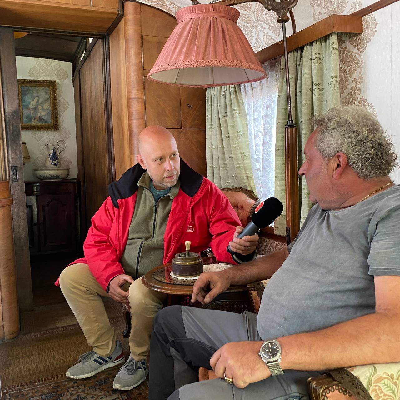 Noch bis 1991 haben die Eltern des Essener Schaustellers Richard Müller in dem Wohnwagen aus den 30er Jahren gelebt. Es war ihr Wohn- und Schlafzimmer. Die Küche war in einem extra Wagen. Heute noch steht der Aschenbecher seines Vaters auf dem Schreibtisch neben dem alten Ölofen. In einer ruhigen Minute zieht sich Müller gerne hierhin zurück und setzt sich in einen der rosafarbenen Sessel seiner Eltern. Wie sein Vater raucht er dann eine Zigarre. Er sagt: der Wagen ist es nicht anders gewohnt.