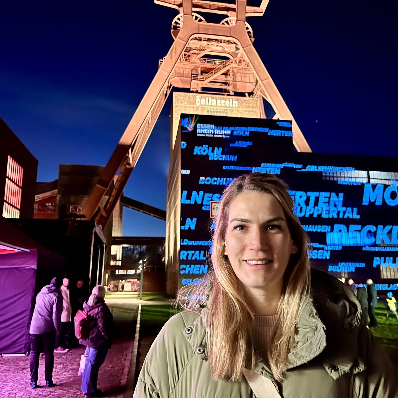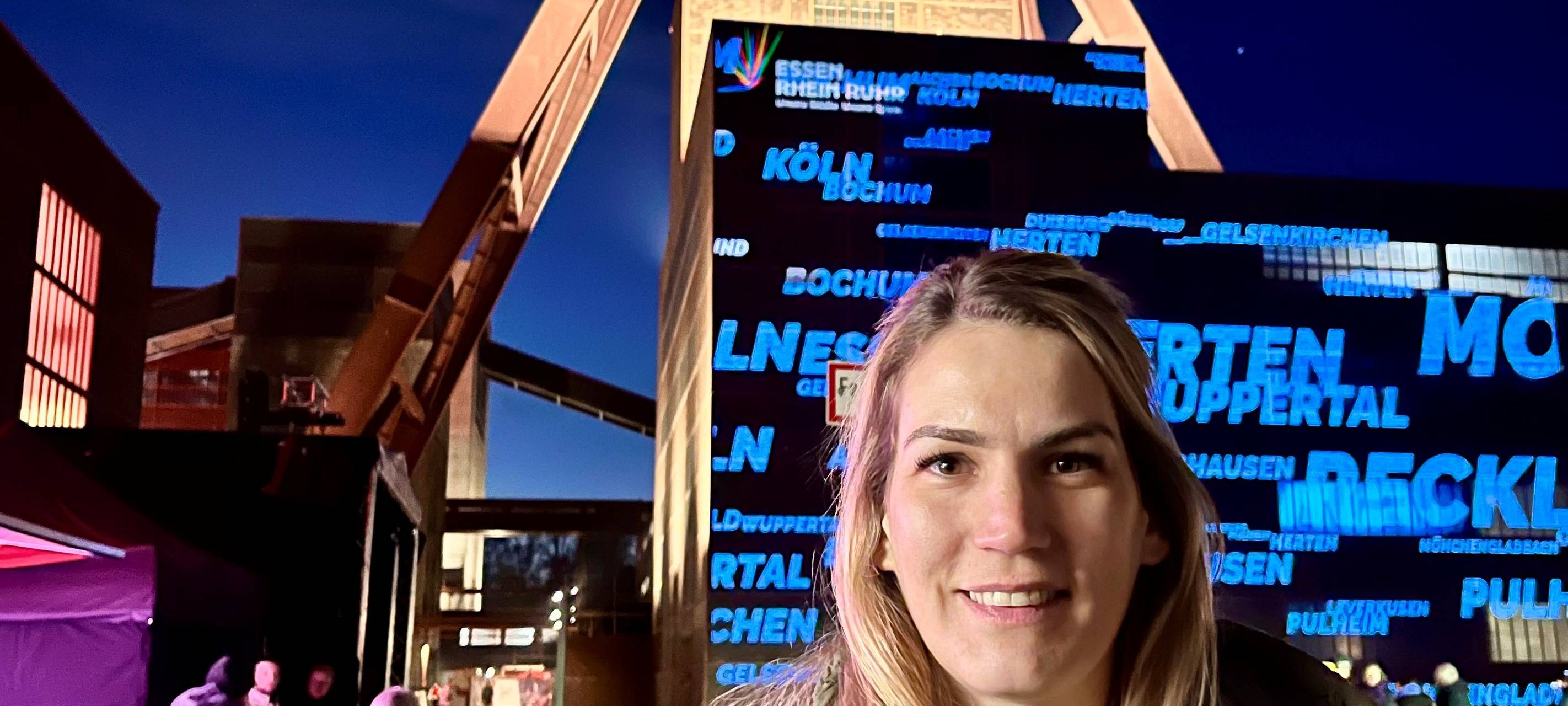 Der Doppelbock auf Zollverein wurde am Montagabend (19.01.26, 17.20 Uhr) ganz besonders beleuchtet. Er verwandelte sich in ein sichtbares Wahrzeichen für die Olympischen Spiele an Rhein und Ruhr. Besucher konnten die Licht-Instillation sogar mitbestimmen. Über einen QR-Code konnten Besucherinnen und Besucher ihre eigene Name und einen Satz zu Olympia hochladen. Nach einiger Zeit, konnten sie ihren Spruch und ihren Namen als Licht-Installation auf dem Doppelbock sehen. Viele machten Selfies und Filme mit ihrem Spruch auf dem Doppelbock. Neben dem Lichtspektakel gab es auch ein Bühnenprogramm mit Essener Sportlerinnen und Sportlern, Essens Oberbürgermeister Thomas Kufen und der NRW-Staatsministerin für Sport, Andrea Milz. Die Basketball-Nationalspielerin Sonja Greinacher war auch auf Zollverein, um Werbung für die Olympia-Bewerbung zu machen. Sonja Greinacher, ist Essenerin, sie wurde bei den Sommerspielen 2024 in Paris Olympiasiegerin mit der 3X3 Basketball-Nationalmannschaft. In Radio Essen Interview erzählt die Athletin warum sich das Ruhrgebiet zusammen mit dem Rheinland um die Olympischen Spiele bewerben sollten.