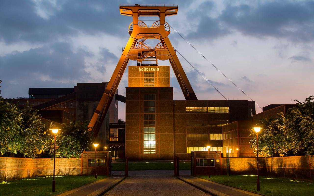 Zollverein und Uniklinik in Essen setzen Zeichen für Kinderrechte - blaue Gebäude